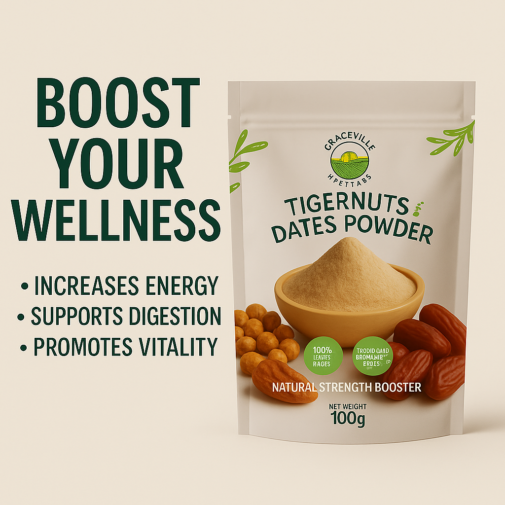 Ignite your inner fire with the natural power of Tigernut, Dates, and Bitter Kola. This blend is traditionally cherished for enhancing vitality, stamina, and passion. Each ingredient works together to fuel your body and awaken your senses. Perfect for those seeking a natural energy boost.